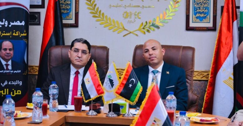 برعاية الرئيس السيسي ورؤيه المشير خليفه حفتر.. اطلاق تكتل عالمي لاعادة الإعمار في ليبيا وتدشين مشروع مدينة عمر المختار الصناعية المستدامة بقيادة مجمع عمال مصر.. وهيثم حسين: تعاون مثمر يقود مسار التنمية.. وتنسيق كامل وتوافق بنّاء مع وزير العمل الليبي عبد الله أرحومة وبلقاسم حفتر رئيس صندوق الإعمار بتقديم الدعم الاستراتيجي