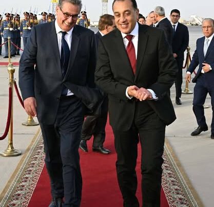 استقبل مساء اليوم، الدكتور مصطفى مدبولي، رئيس مجلس الوزراء، في مطار القاهرة الدولي، عزيز أخنوش، رئيس حكومة المملكة المغربية الشقيقة، في مستهل زيارته الرسمية إلى القاهرة على رأس وفد حكومي رفيع المستوى، لتدشين أعمال الدورة الأولى للجنة التنسيق والمتابعة المصرية ـ المغربية المشتركة.