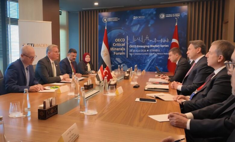 فى مستهل زيارته إلى إسطنبول للمشاركة ممثلاً لمصر في منتدى المعادن الحرجة لمنظمة التعاون الاقتصادي والتنمية، عقد المهندس كريم بدوي، وزير البترول والثروة المعدنية، جلسة مباحثات مع السيد ألب أرسلان بيرقدار، وزير الطاقة والموارد الطبيعية التركي، جرى خلالها بحث سبل تعزيز التعاون بين مصر وتركيا في مجال التعدين، في ضوء اللقاءات السابقة بين مسئولي هيئة الثروة المعدنية والصناعات التعدينية المصرية وشركة OZ التركية للتعدين، إلى جانب مذكرة التفاهم الموقعة بين البلدين في مايو 2025.